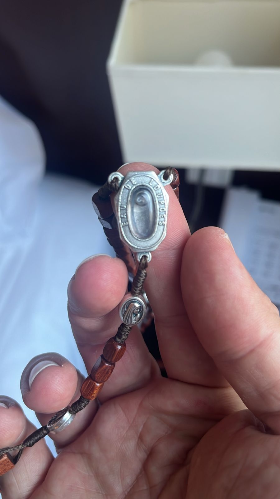 Terço de Lourdes de Cordão - Marrom + Frasquinho com água de Lourdes